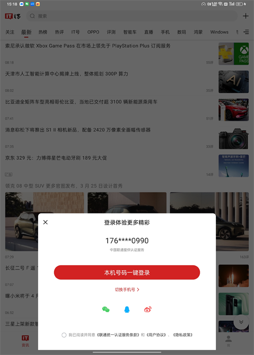 其次,支持验证码短信同步,这个应用场景非常广泛,比如平板登录IT之家App,需要手机号验证,此时 OPPO Pad 2 也可以像手机一样,实现验证码快速填充、一键登录功能。
