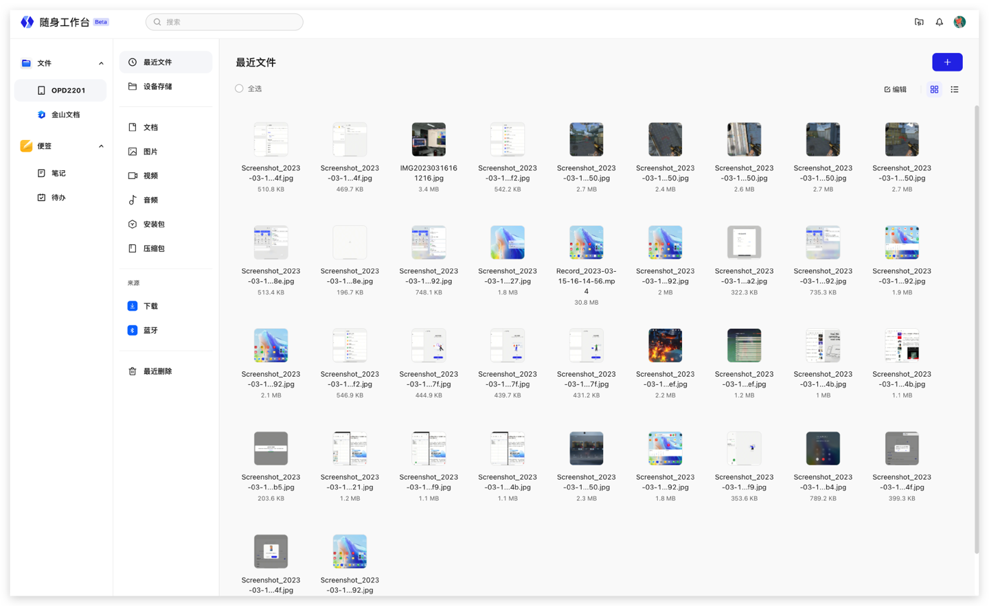开启随身工作台后,通过浏览器登录工作台网址,即可查看平板、手机内的所有文件资料,包括图片、视频乃至音频、压缩包、安装包等等。