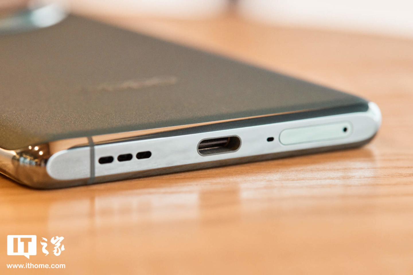 底部同样为纯平设计,包括扬声器、充电口以及 SIM 卡槽和麦克风开孔。